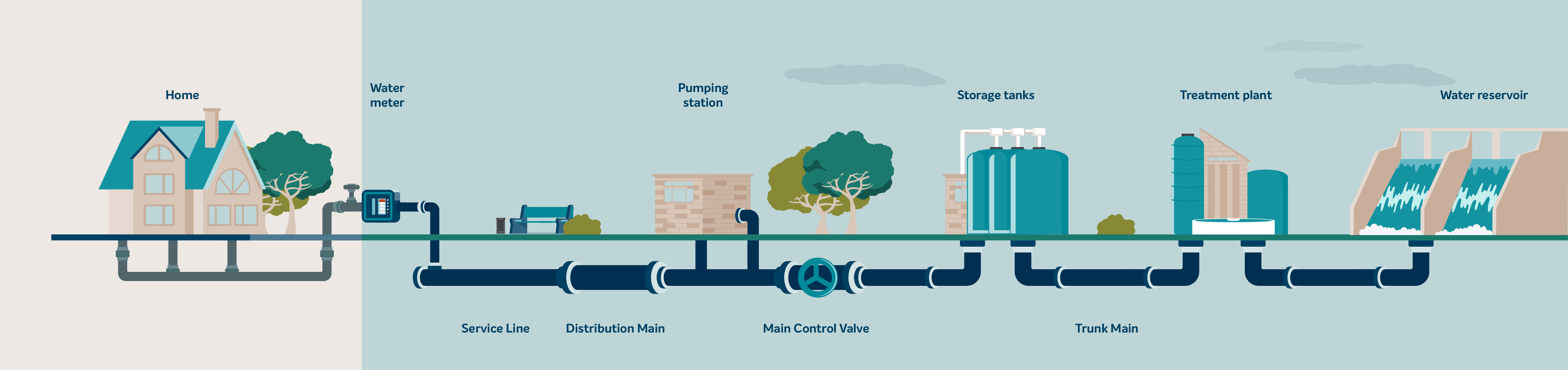 Our water network spans over 6,800 kilometres of pipe, 240 pumping stations, 40 water tanks, 8 water treatment plants, and 12 major reservoirs serving 320,000 permanent residents.