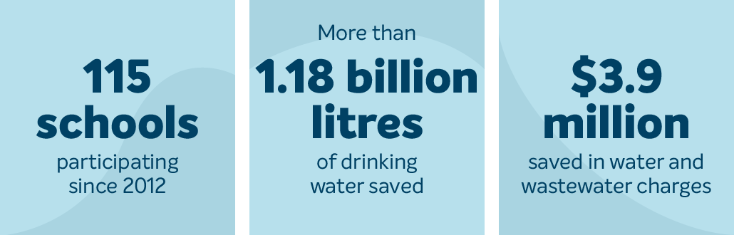 Since 2012, 115 participating schools in the Barwon Water region have together saved more than 1.18 billion litres of drinking water, and more than $3.9 million in water and wastewater charges.